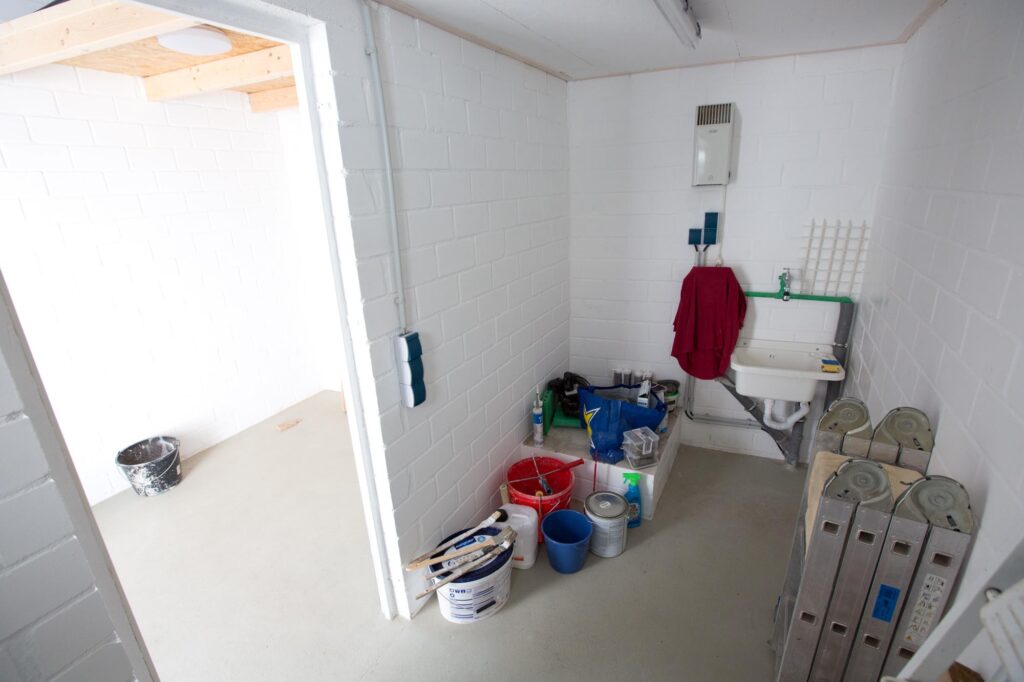 - Daran schließt sich ein Abstellraum z.B. für Fahrrad etc. und eine separate Waschküche für WM/WT mit Handwaschbecken an. Diese sind auch rückseitig durch eigene Türe frei zugänglich.
